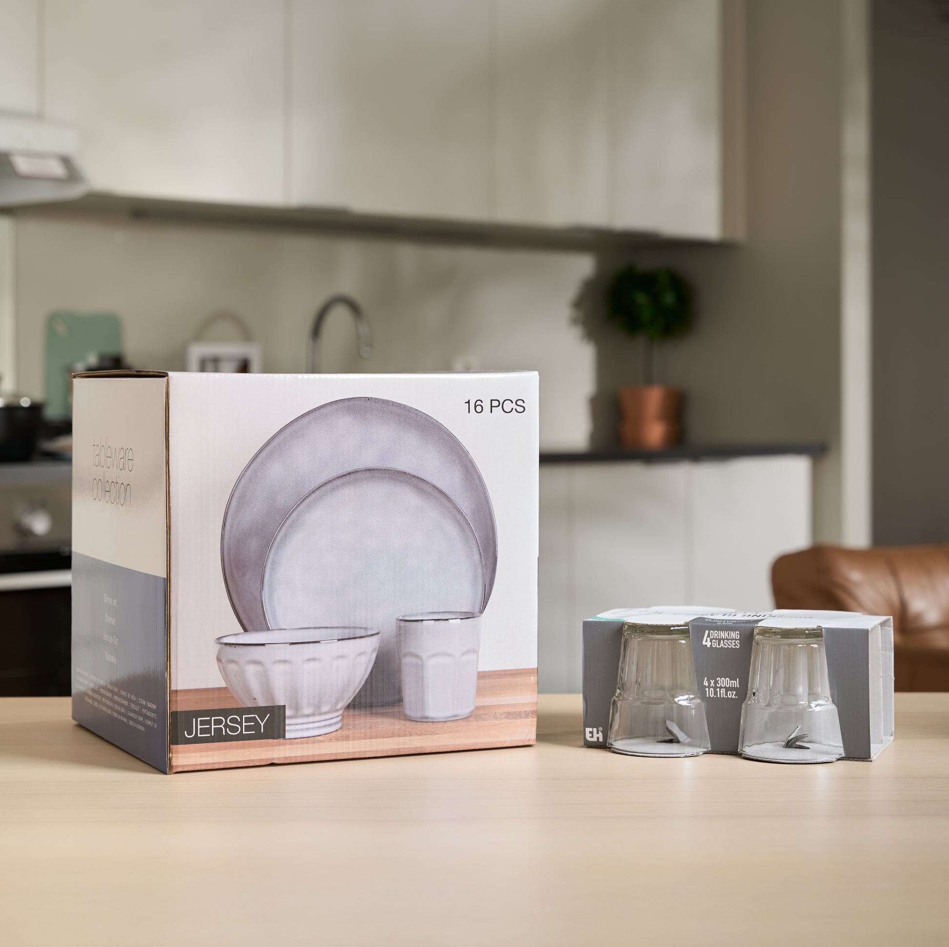 Settet inkluderer også fire riflete vannglass på 300ml som tilfører en fin kontrast til borddekkingen.