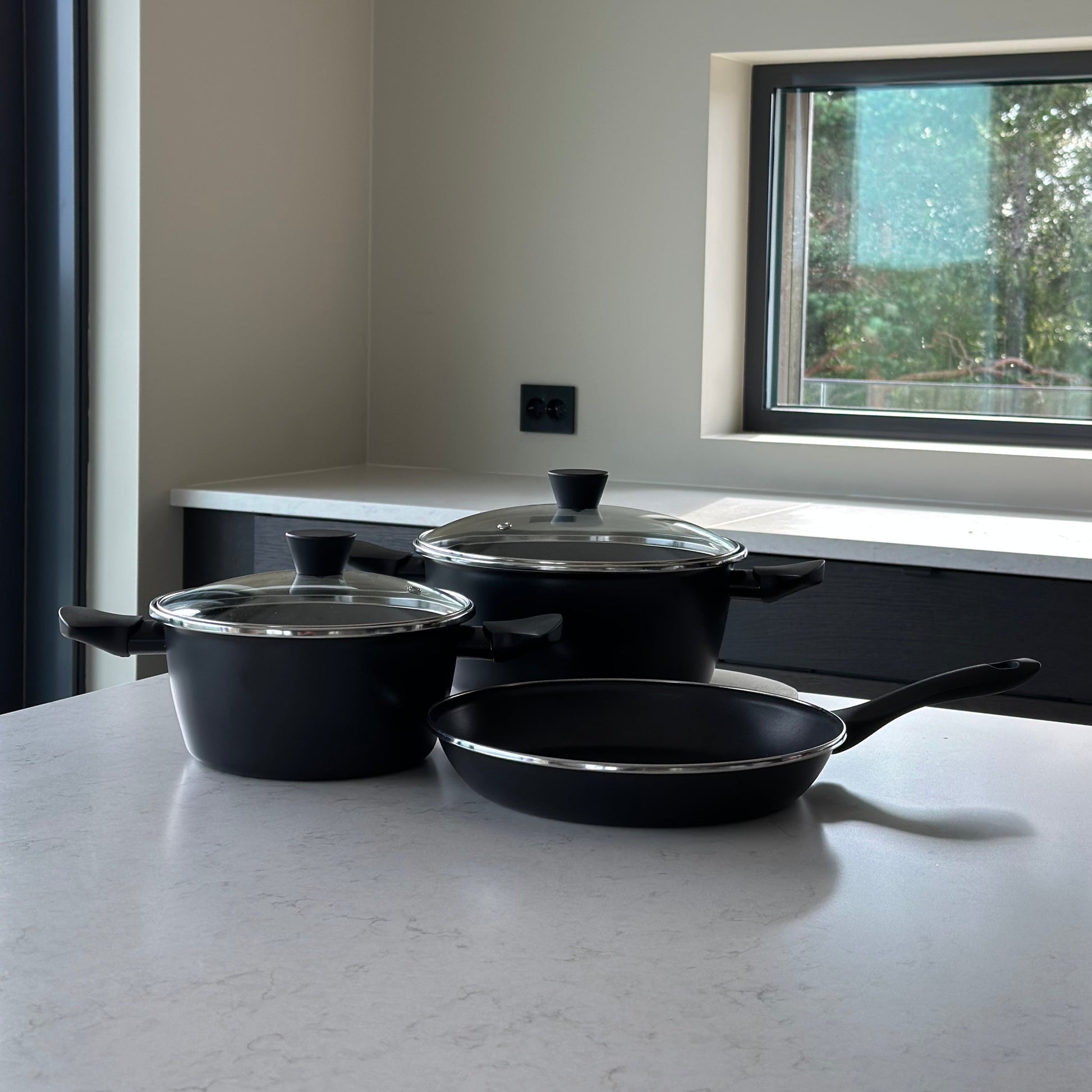 Kjelesettet for deg som ønsker akkurat det du trenger til matlagingen. Settet har et enkelt design og er lett å bruke. Inkludert i settet er en stor kjele, en liten kjele og en stekepanne. Settet kan brukes på alle koketopper, inkludert induksjon og det kan vaskes i oppvaskmaskinen.