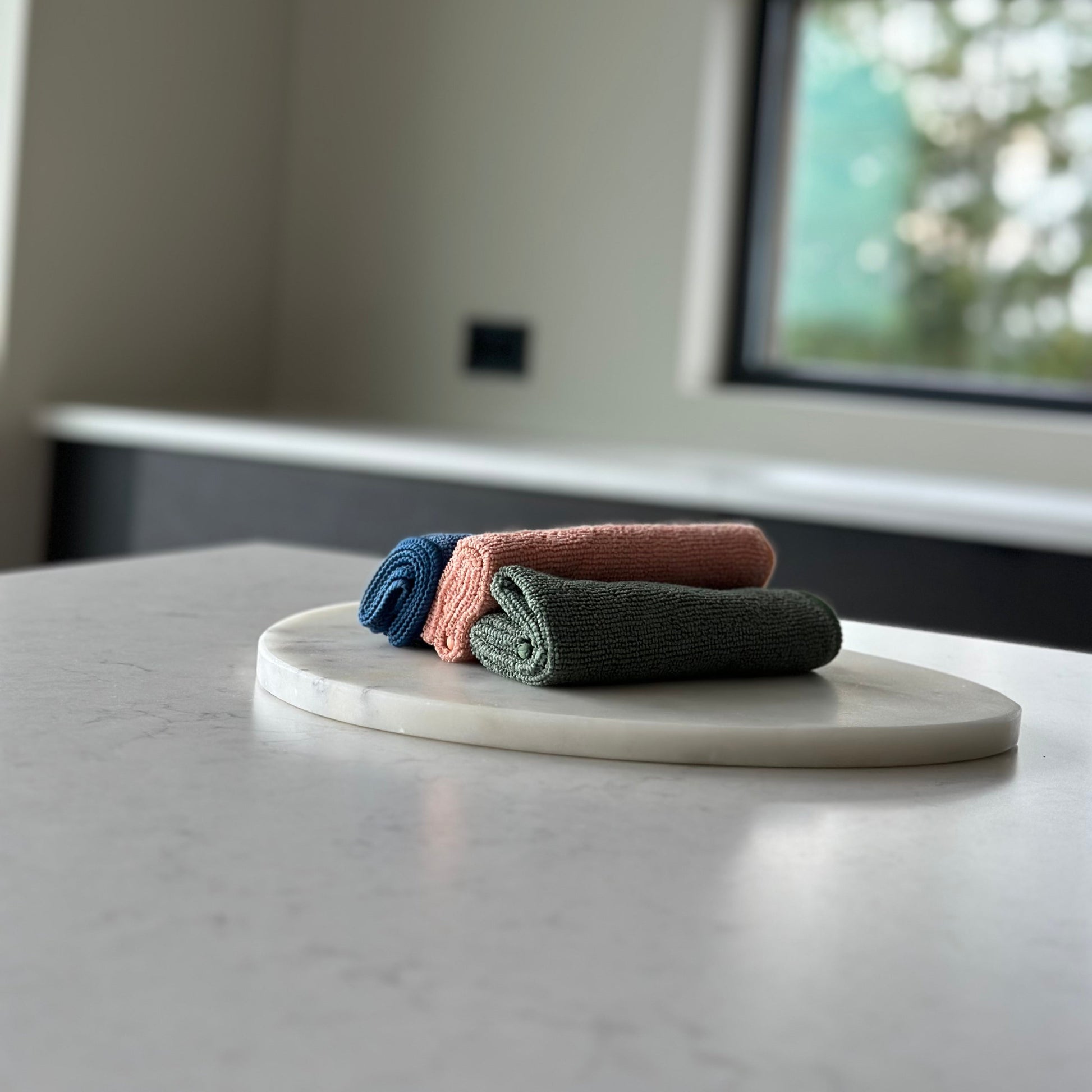 En 3pk med mikrofiberkluter. Kommer i rosa, grønn og blå. Mikrofiberklut.